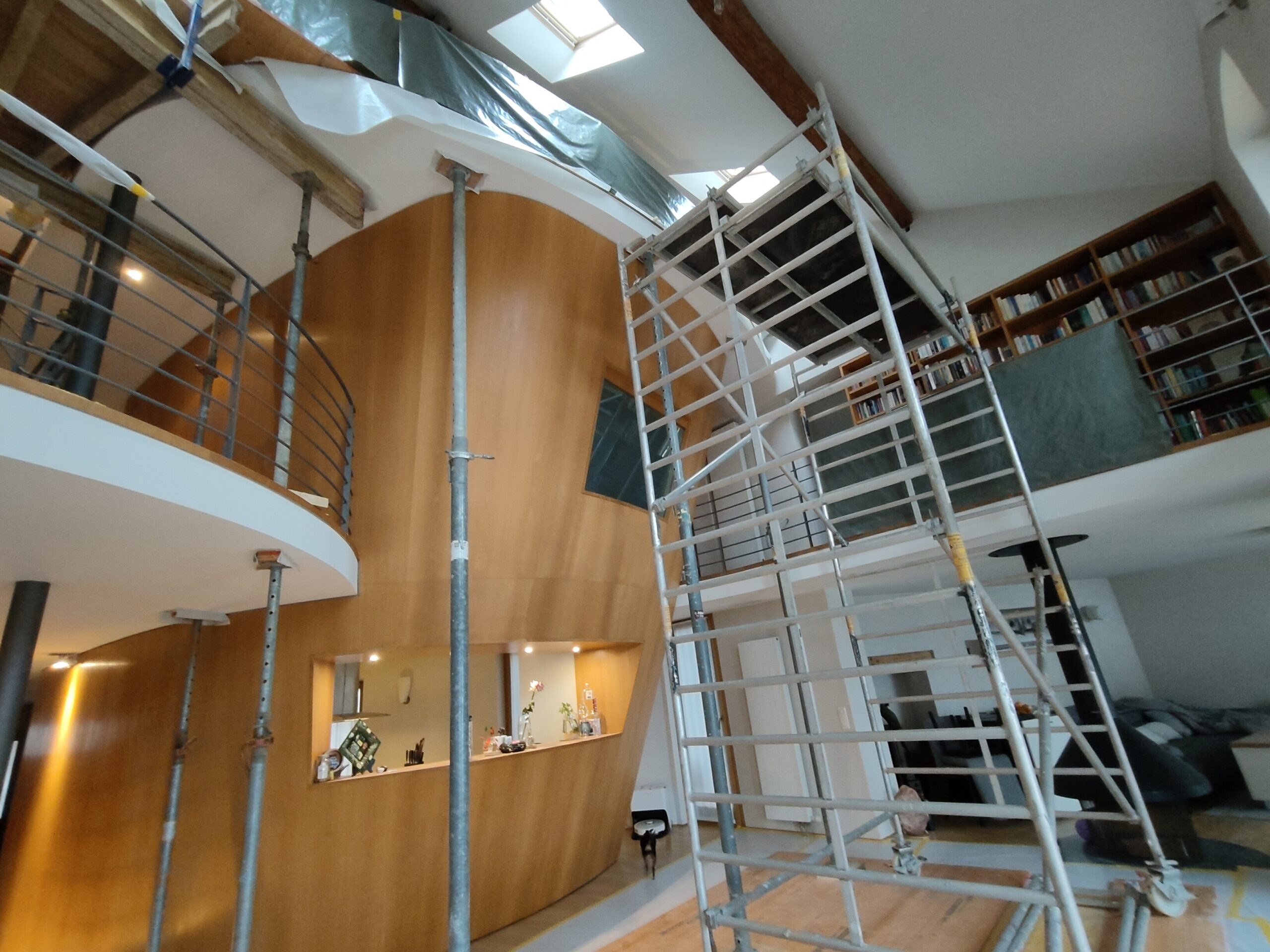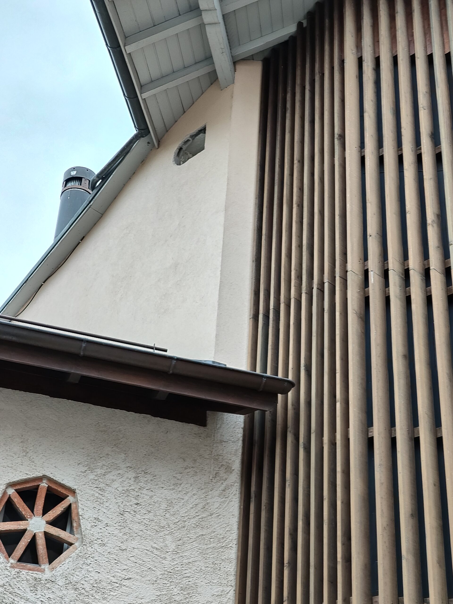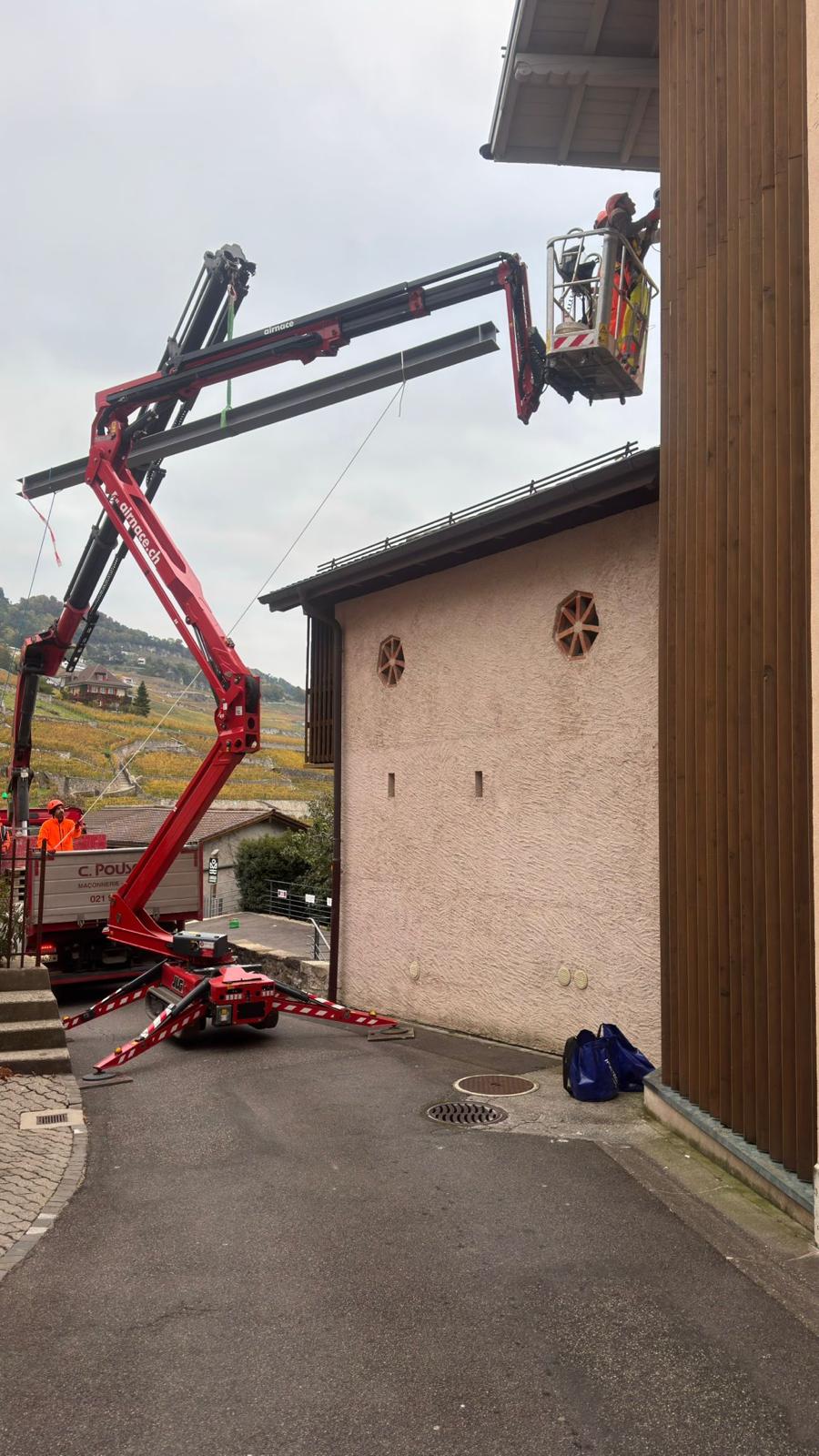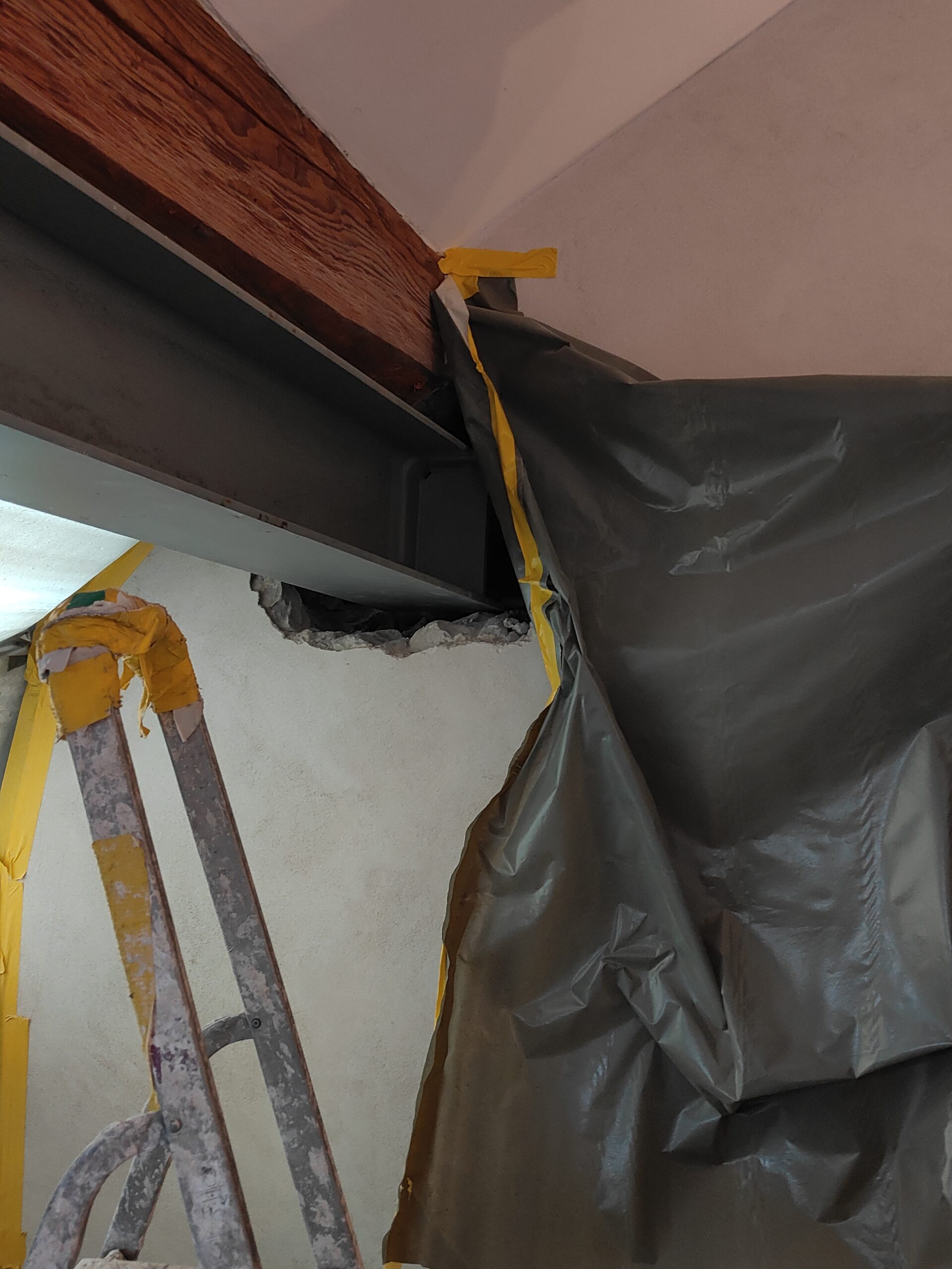 Le projet a consisté en l’ajout d’un profilé métallique sous la poutre en bois ayant rompu.