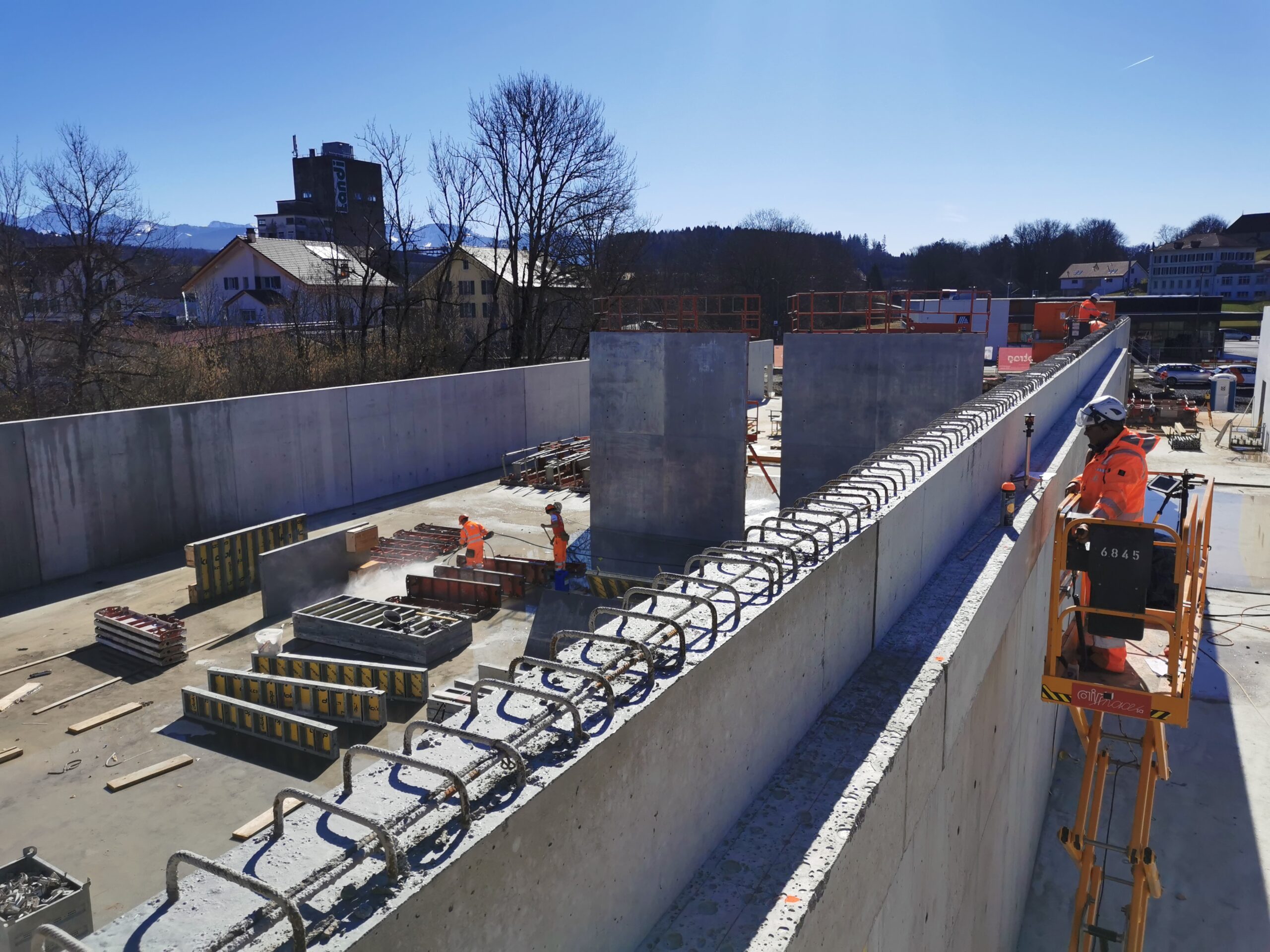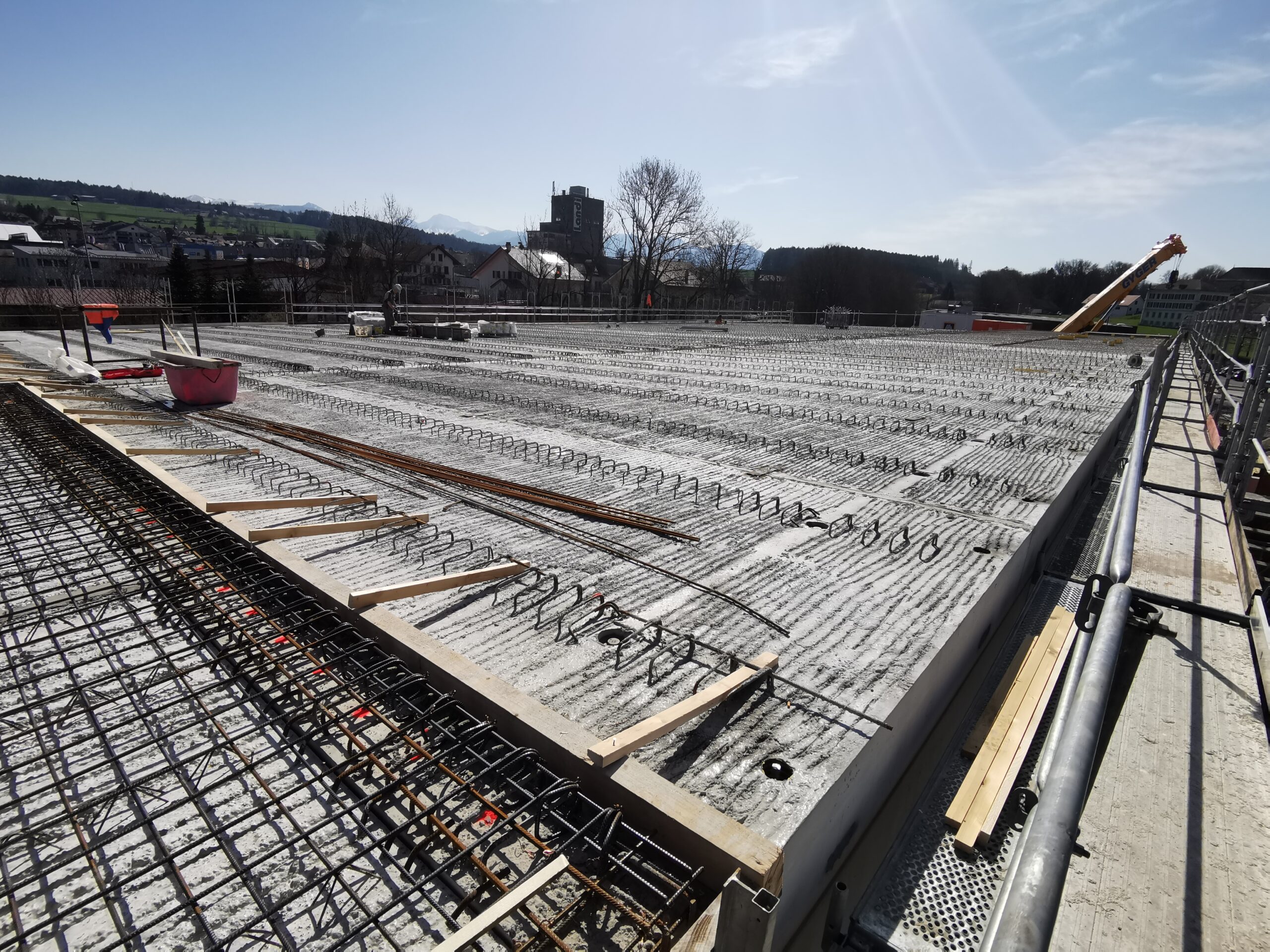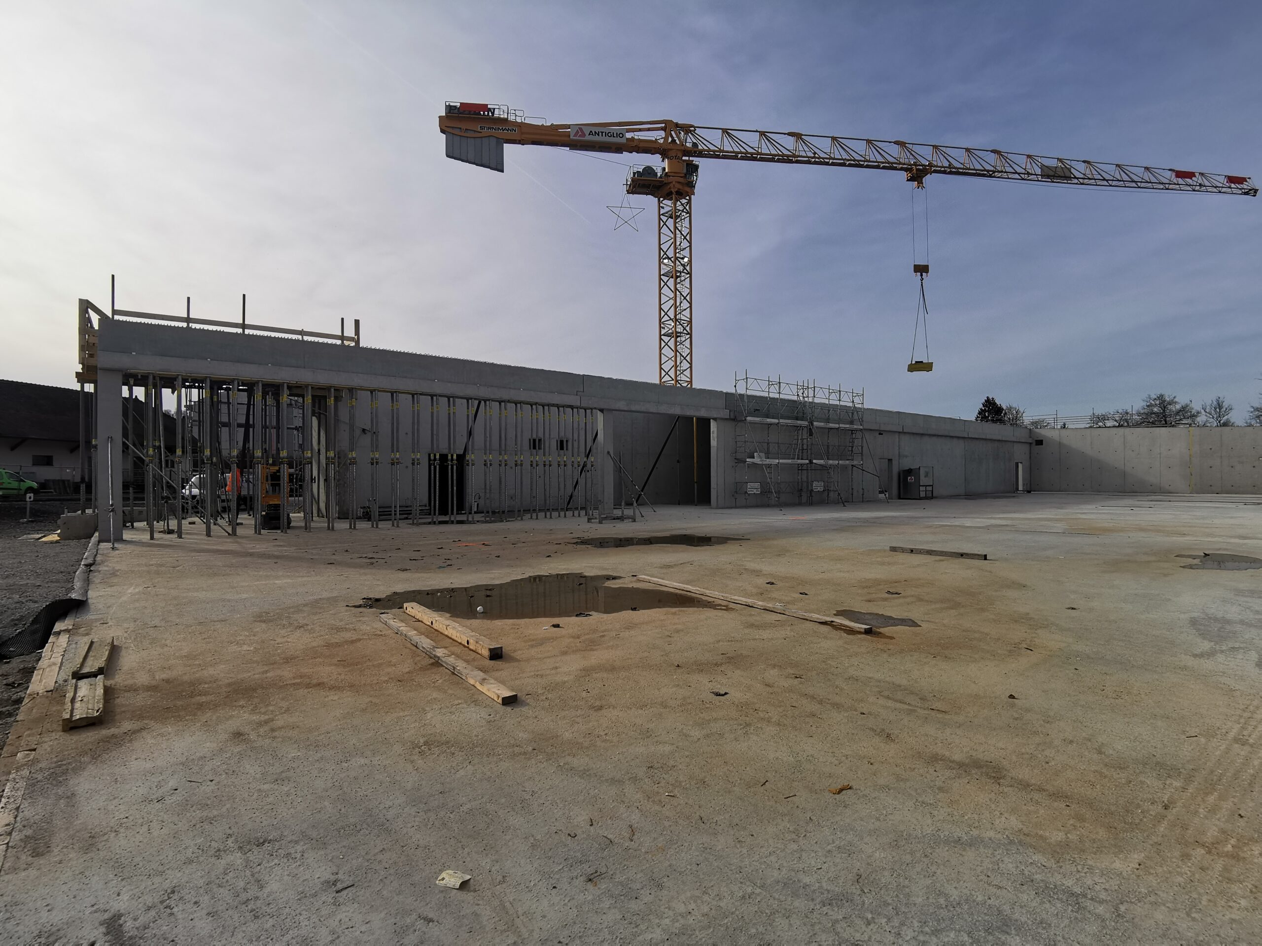 Le projet a consisté en la construction d’une nouvelle succursale Lidl à Oron, réalisée entre 2024 et 2025. Le bâtiment principal a été conçu sous la forme d’une vaste halle commerciale, répondant aux exigences fonctionnelles et esthétiques propres à la grande distribution.