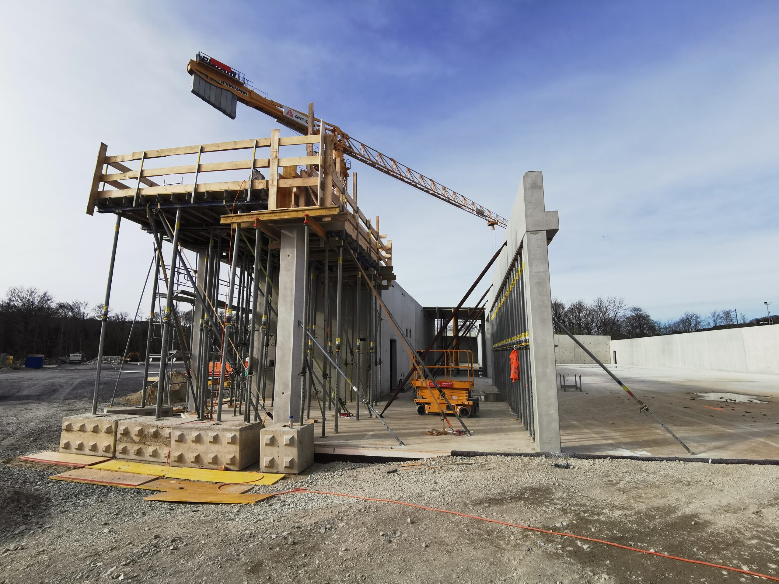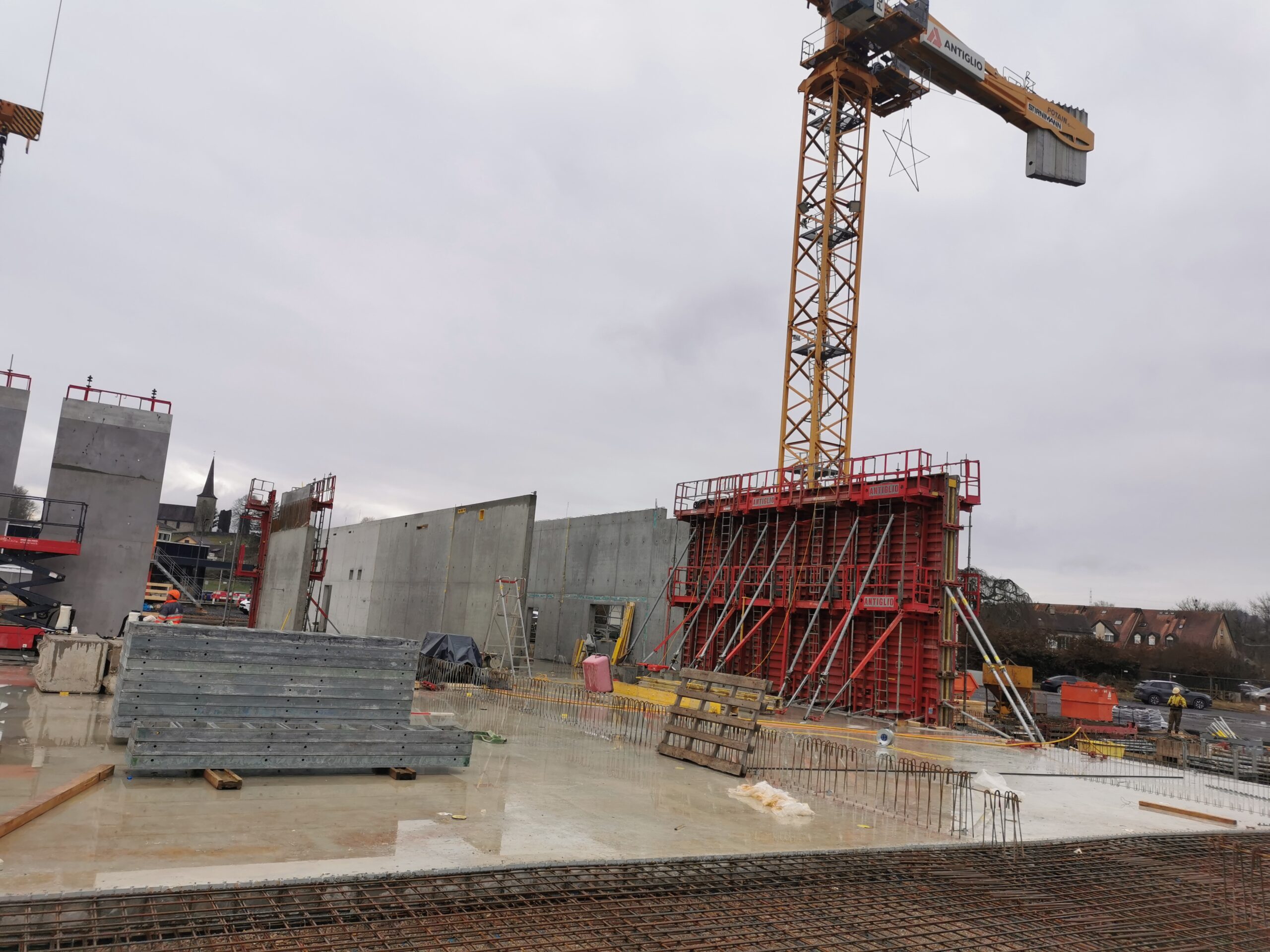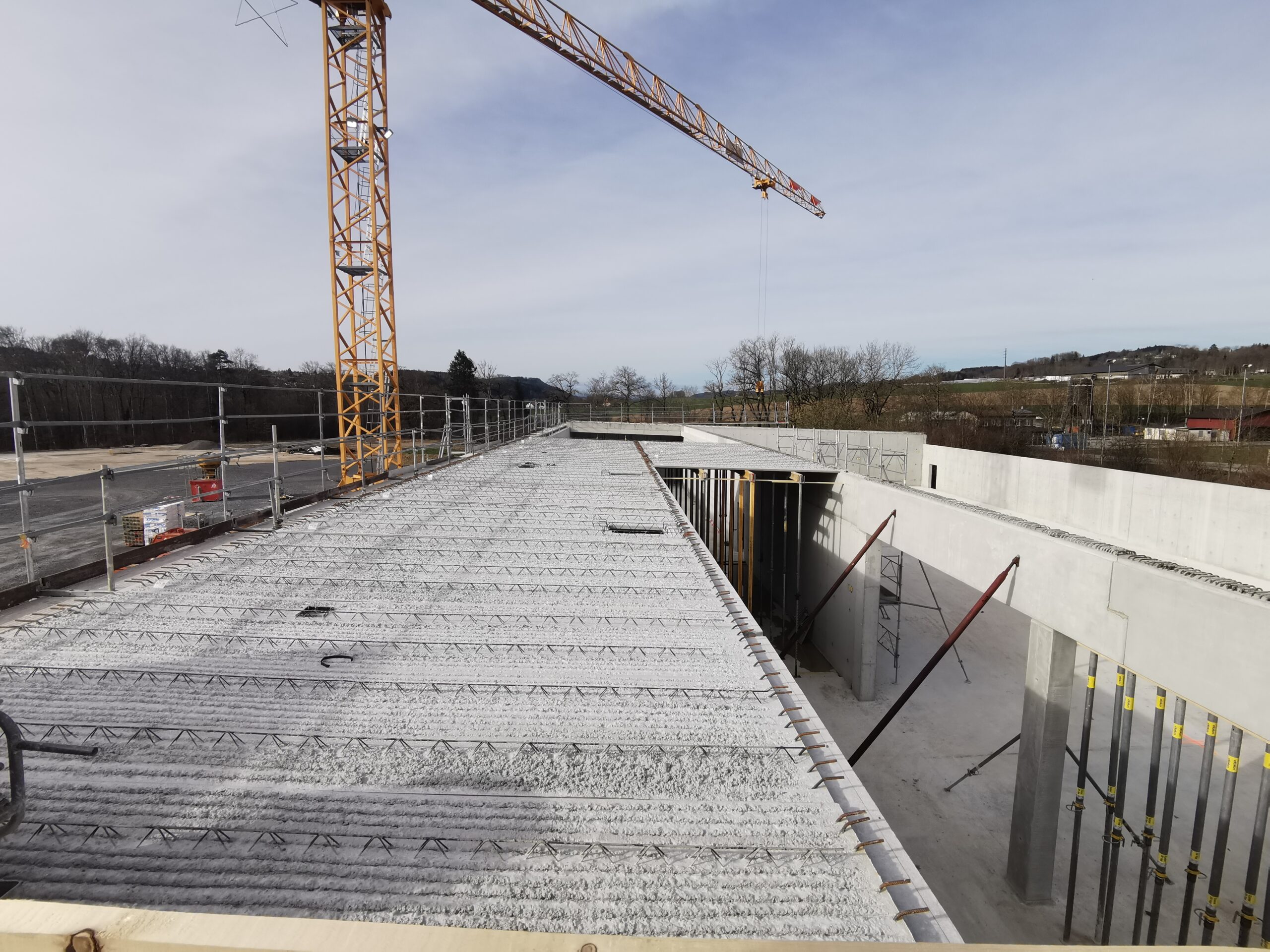 Le projet a consisté en la construction d’une nouvelle succursale Lidl à Oron, réalisée entre 2024 et 2025. Le bâtiment principal a été conçu sous la forme d’une vaste halle commerciale, répondant aux exigences fonctionnelles et esthétiques propres à la grande distribution.