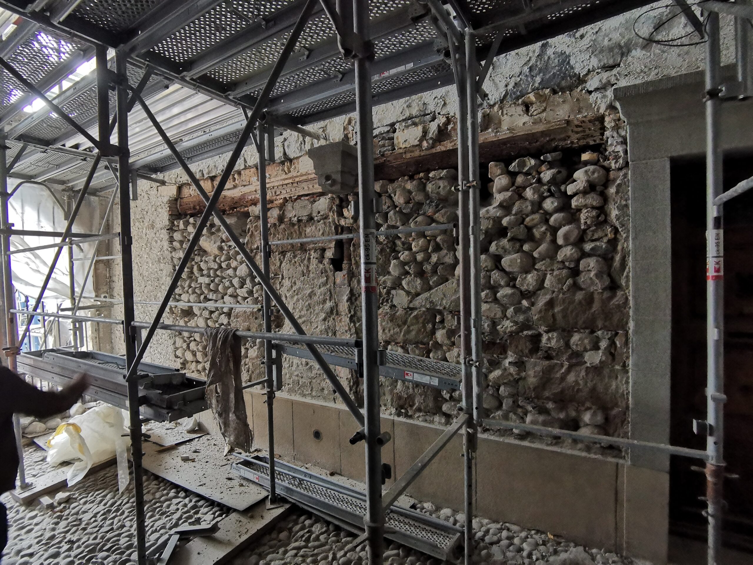 Le projet consiste en l’assainissement et le réaménagement du manoir de Nyon. Les niveaux au rez sont abaissés pour accueillir de nouveaux volumes, et des ouvertures d’époques recrées.